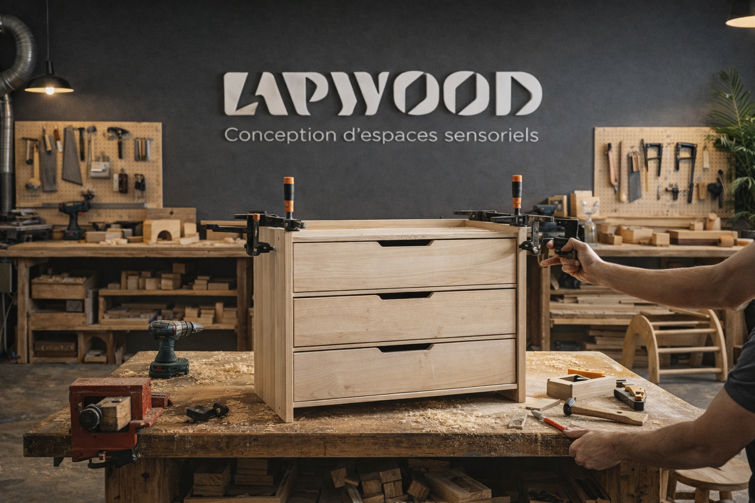 Dans un univers où le bois est souvent associé à des formes rigides et attendues, le défi était de traduire une dimension plus sensible à travers l’identité.